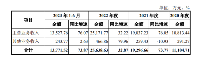 根据问询函中披露的最新数据显示,2022年度、2023年上半年,澎立生物实现营收分别为2.56亿元、1.38亿元,同比增速分别为32.87%、73.87%,增速较快主要系药物临床前CRO服务和医疗器械临床前CRO服务增长所致。