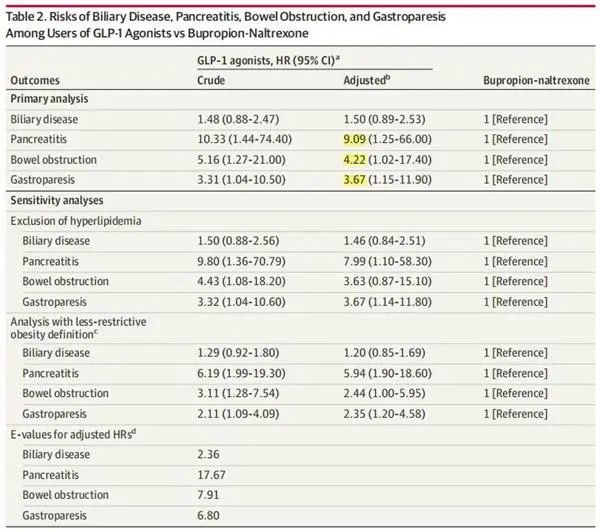 该文深入探讨了GLP-1类激动剂与胃肠道不良反应的关联性,结果揭示,在使用司美格鲁肽或利拉鲁肽这两种GLP-1类药物(使用者均为肥胖症患者,但无糖尿病病史)后,胰腺炎、肠梗阻和胃轻瘫等胃肠道不良反应的风险显著上升,而胆道疾病的风险并未明显增加。鉴于GLP-1类激动剂的广泛应用,尽管这些胃肠道不良事件罕见,但在考虑使用这些药物进行减肥时,仍需警惕其潜在风险。