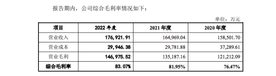净利润如此惊人,也意味着敷尔佳毛利率不低。2019-2022年,敷尔佳毛利率分别达到76.97%、76.47%、81.95%和83.07%,已经实现了“一本万利”。而站在高毛利金字塔尖的茅台,2022年毛利率为92.6%,敷尔佳再努努力,追上茅台也不是一件难事。