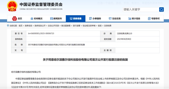 据证监会官网公告,2023年6月9日,哈尔滨敷尔佳科技股份有限公司(以下简称“敷尔佳”)首次公开发行股票注册获得同意批复。这意味着继巨子生物之后,敷尔佳将成第二家登陆资本市场的医美面膜公司,同时也是第一家登陆创业板的医美赛道选手。