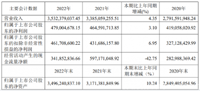 2022年,马应龙实现营业收入35.32亿元,同比增长4.35%;归属于上市公司股东的净利润为4.79亿元,较上年同期增长3.1%,其中归属于上市公司股东的扣除非经常性损益的净利润为4.62亿元,较上年同期增长6.95%。
