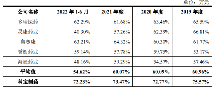 科宝制药主要从事药品制剂的研发、生产及销售。2019年-2022年1-6月,公司营业收入分别为14.449亿元,17.013亿元、19.728亿元和8.185亿元,整体呈上升趋势,净利润分别为1.103亿元、1.83亿元、1.745亿元和6,603.35万元,2021年度及2022年1-6月同比有所下滑,主要系公司研发投入不断增加、子公司建设推动固定资产折旧摊销金额上升以及新冠肺炎疫情反复等原因综合所致。