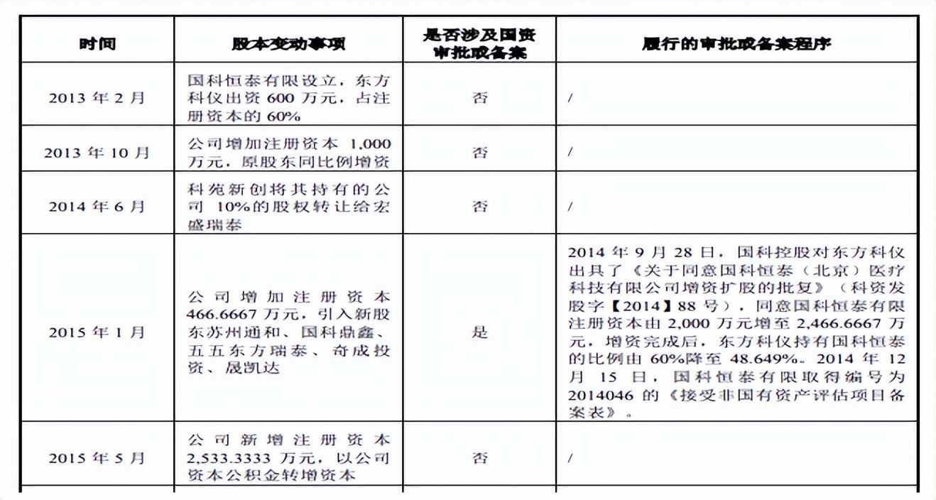2016年12月20日,东方科仪、宏盛瑞泰、国科鼎鑫、苏州通和、君联益康、国科嘉和金源、百年人寿、五五绿州、西藏龙脉得、北极光正源、北极光泓源、常州山蓝、朗闻衡璟13名机构股东作为发起人签订《发起人协议》,同意国科恒泰有限变更设立为股份有限公司。国科恒泰有限以截至2016年7月31日经审计的净资产值人民币2.579亿元按1.7194:1的比例折合为股份公司股本1.5亿股,其余计入股份公司资本公积;各发起人按照各自在国科恒泰有限的出资比例持有相应数额的股份。联想集团旗下的基金君联益康发行前持有公司5.4590%股权。