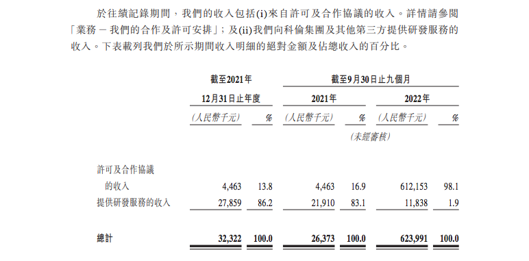 而正是依靠上述合作协议的订立,科伦博泰收获前期及里程碑付款合共高达118亿美元。根据招股书,科伦博泰2021-2022年前9个月分别实现收入3232万元和6.24亿元,其中2022年前9个月收入大幅增长正是由于公司与默沙东的合作与预付款项到账。