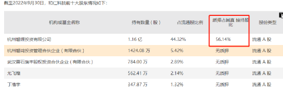 更需要指出的是,目前和仁科技的股份存在质押情况。截至2022年一季度末,其控股股东磐源投资持有的近六成股份处于质押状态。