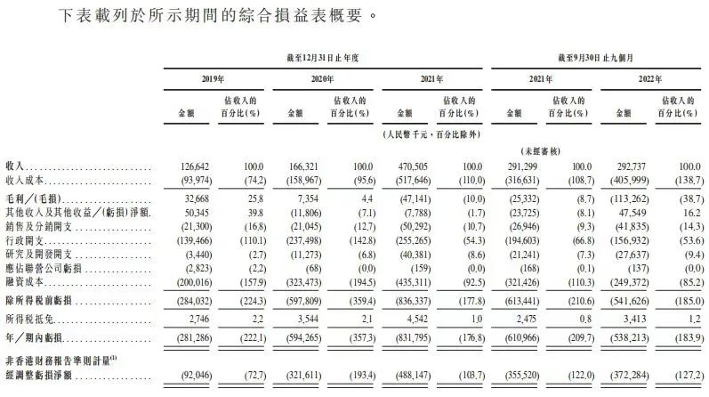 2019年至2021年及2022年1-9月(以下简称报告期),美中嘉和收入为1.27亿元、1.66亿元、4.71亿元和2.93亿元;期内亏损分别为2.81亿元、5.94亿元、8.32亿元和5.38亿元,四年不到累亏超22亿;经调整亏损净额分别为9204.6万元、3.22亿元、4.88亿元和3.72亿元。