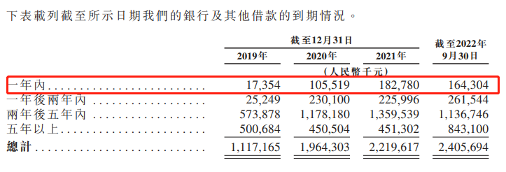 报告期内,美中嘉和银行及其他借款分别为11.17亿元、19.64亿元、22.2亿元及24.06亿元。截至2022年9月底,其一年内到期债务高达1.64亿,同期账上现金只有8563万。
