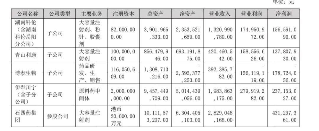 科伦药业期末营收91.25亿元。其中,伊犁川宁(含分子公司)营收19.84亿元,占总营收21.74%;博泰生物营收3.92亿元,占总营收4.30%。