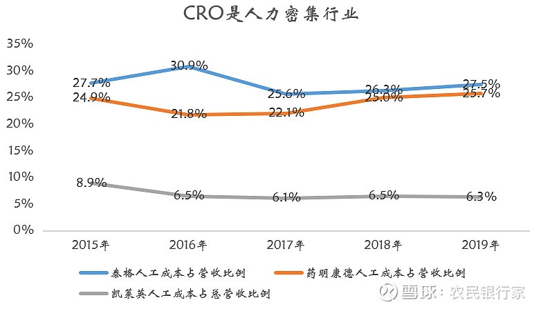 乍看上去,研发要比工艺+生产高大上得多,其实不然,CRO确实要比单纯生产技术含量要高,但是人工成本占主导也就意味着,CRO只是由硕士、博士组成的劳动密集型产业,且人才对于某一家CRO企业的忠诚度显然不会很高——干的是同样的事情,在这家CRO企业干可以,在那家也可以,自然是哪里的待遇更高,研发人员就会去哪里。