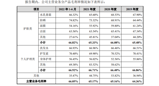 尽管如此,环亚科技依旧拥有化妆品行业常见的高毛利率。招股书显示,环亚科技2019-2022年上半年毛利率分别为64.11%、65.29%、64.84%及65.42%。
